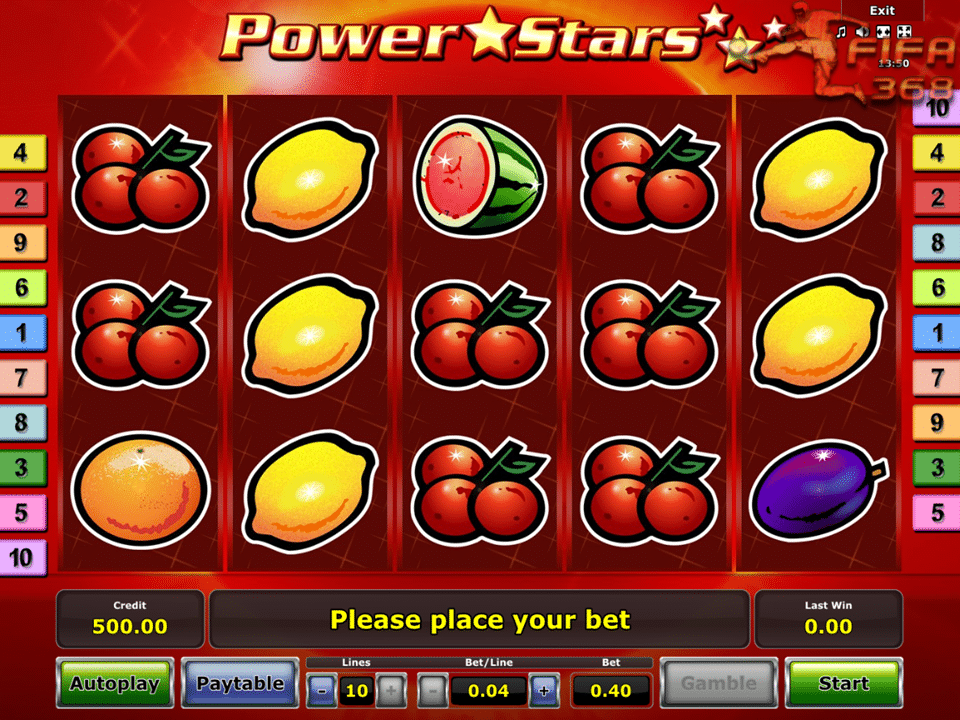 อัตราการจ่ายรางวัล ของเกม Power stars แต้มที่ได้มากสุด ในเกม Power Stars นั่นคือ เลข 7 นั้นเอง เป็นเลขนำโชคของเรา ซึ่งมีผลคูณถึง 600 แต่เงื่อนไขคือ ต้องได้สัญลักษณ์นี้ทั้งหมด 5 ช่อง ถ้าหากว่าเข้า 5 ช่อง คุณจะรับเงินรางวัล นับว่าเป็นเงินรางวัล ที่เยอะมหาศาลเลย รองลงมาก็มีจะผลคูณ 300, 1200, 90 และน้อยสุดคือ 6 คะแนน อย่างที่บอกตอนแรกว่า สล็อต เป็นเกมที่การคำนวนค่อนข้างยาก เพราะการหมุนสปิน 1 ครั้งนั่น คุณจะมีโอกาสชนะมากกว่า 1 ครั้ง ก็เป็นได้ ยิ่งถ้าคุณเลือกจำนวนไลน์ ในการเล่นเยอะ โอกาสที่คุณจะเล่นแล้วชนะ ก็มีมากขึ้นเช่นกัน แต่ถ้าจะให้คุณคำนวนเองทุกครั้ง ก็อาจจะยากเกินไป แต่คุณสามารถเชื่อ ในการคำนวนของแอฟได้ เพราะว่าเรามีโปรแกรม ที่คำนวนได้อย่างถูกต้องและแม่นยำ หากคุณได้ดาว ทั้งหมด 9 ช่อง บนรีลที่ 2 3 และ 4 นั่นถือว่าคุณได้ชนะเกม พาวเวอร์ สตาร์ สำหรับเกมนี้ คุณสามารถเริ่มต้นเดิมพัน ได้ที่ 0.1 GP สูงสุด 100 GP